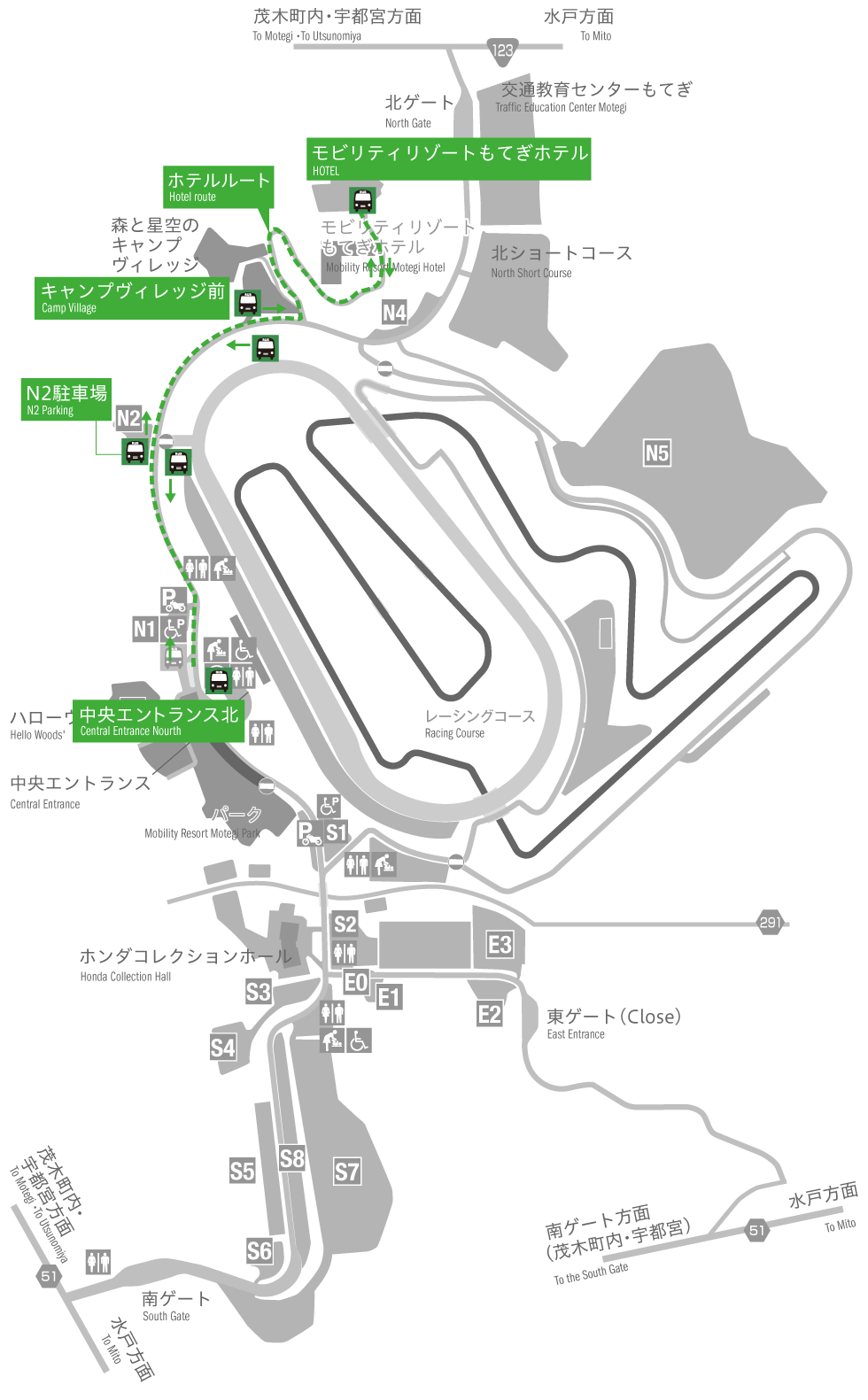 - ■Designated parking tickets: N1, N2, Hello Woods, Mobility Resort Motegi Hotel, Forest and Starry Sky Camping Village