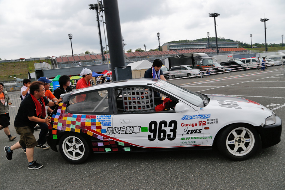 On July 6th, which was a break in the rainy season, in the early morning, the blue sky peeked through the clouds and a refreshing breeze passed through Twin Ring Motegi. As the teams pushed their cars onto the grid early in the morning, they took commemorative photos and did final checks before eagerly waiting for the start of the "JOY TAI" race in their own unique styles. When all 90 cars were lined up on the grid, the opening ceremony began with a declaration by the Twin Ring Motegi Angels, followed by a greeting from General Manager Takao Aoki to all participants. Then, as team introductions began, the countdown started.