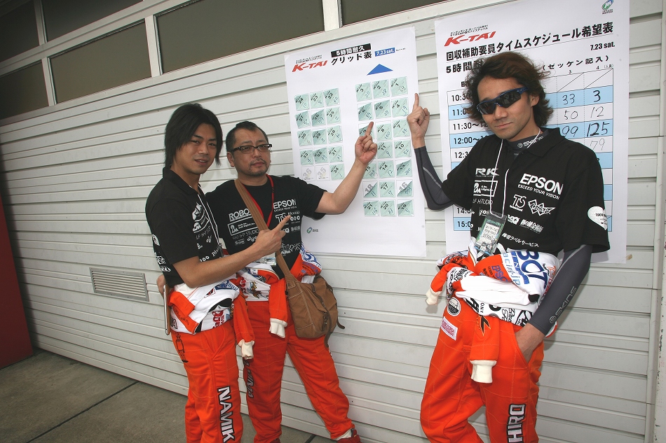 After that, the race reached its climax and [#779 ReonSuperKids-2] once again took the lead, seemingly solidifying their position. However, from behind, [#5 ReonSuperKids-3] who had passed [#50 Parts1@F・RACING], was closing in. Showing no mercy even to their own team, they made a relentless pursuit and with 10 minutes remaining, the gap had narrowed to 7 seconds. Seeing this, [#779 ReonSuperKids-2] picked up the pace once again. They were the first to complete 101 laps and crossed the finish line in first place, with a gap of 9.566 seconds to [#5 ReonSuperKids-3] and 2 minutes and 10.828 seconds to [#50 Parts1@F・RACING]. In the 2011 K-TAI Challenge 5-hour Endurance Race, 3 teams were awarded the most laps completed.