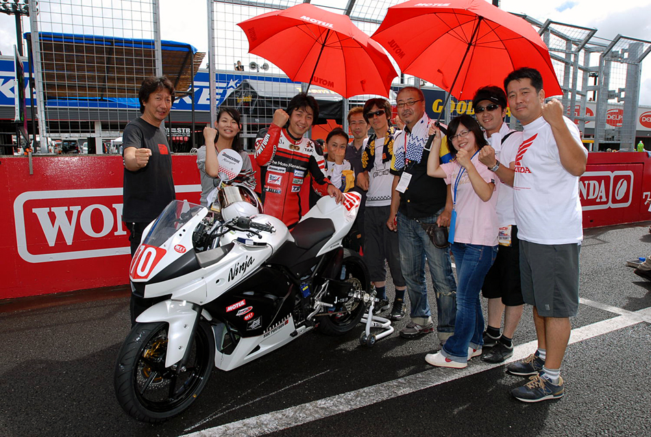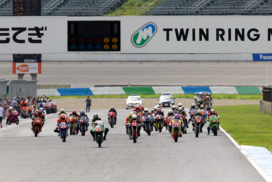 "Open Mote Endurance" is a race that is competed by machines with 115cc or more and 250cc or less, and 4-stroke 2-cylinder or less. It had been raining until the morning, but the weather quickly recovered. The sun shone through the clouds and bathed Twin Ring Motegi in intense sunlight, drying the road surface. By the time the start time arrived, it was almost dry conditions and the race began with the familiar Le Mans-style start for endurance races.
