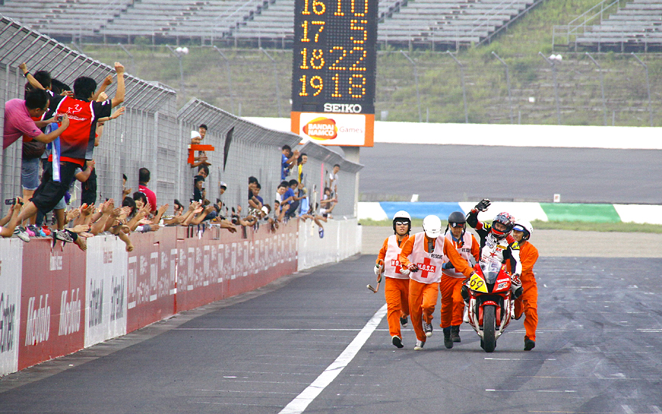 [#24 2Rinkan R.T.] finished in 2nd place with 189 laps. "Even though I have the privilege of racing under the banner of 2Rinkan, I didn't have enough practice as a rider. In 2011, I want to challenge "Mote Tai" with more training than ever before," he showed his determination.
