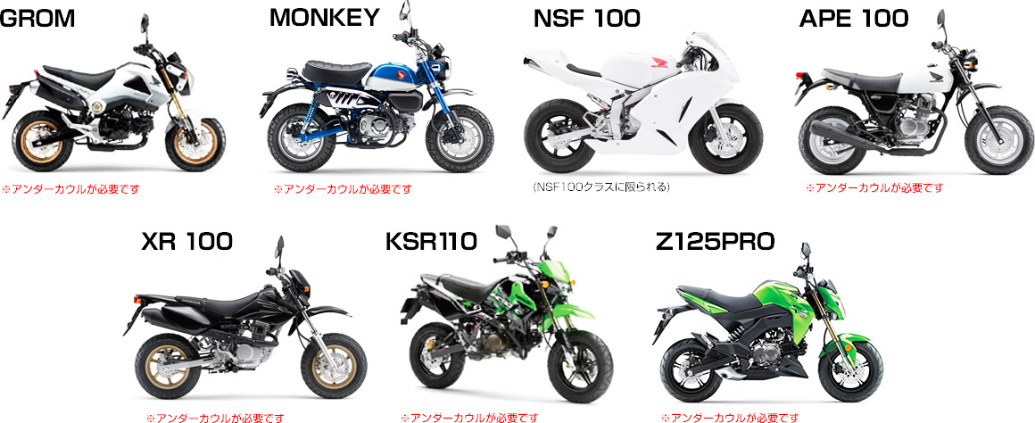 ●Displacement 100cc or less (excluding GROM (MONKEY) *only model 20J-JB02, KSR110, Z125PRO)