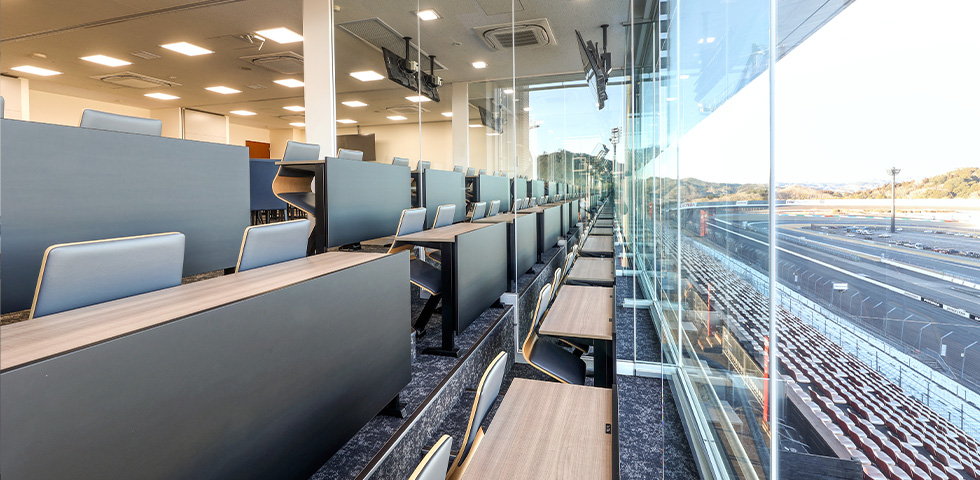 The "VIP SUITE" offers a well-equipped environment and services for watching Super Taikyu races