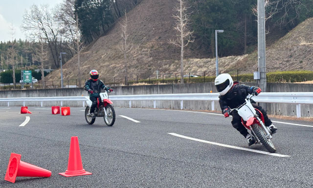 Building on the practice from the Second Stage, you will run a slalom course equivalent to that of the adult on-road school. In the evening, parents and children will ride together on the coveted racing course where MotoGP™ is held.
