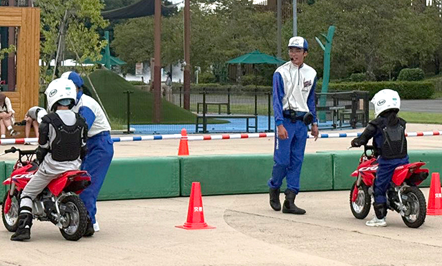This is a Motorcycle School designed to help children learn the importance of rules and manners through motorcycle experiences while interacting with them. Fathers and mothers act as instructors, enjoying the time with their children and conveying various things to them. Even children who are initially not confident with motorcycles can safely enjoy riding with advice from their parents and support from experienced instructors.