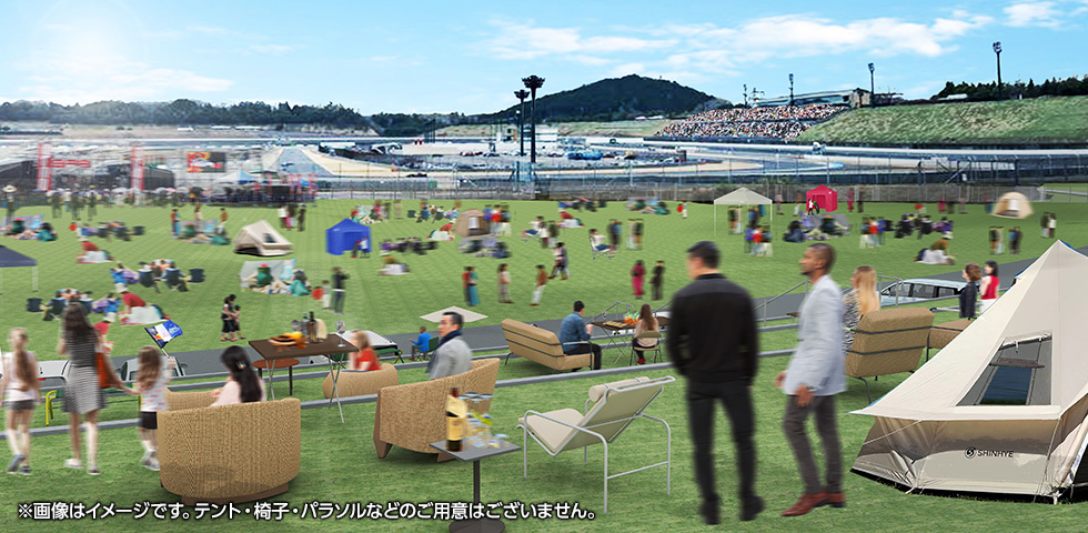 This camping area is equipped with an adjacent parking lot that you can drive directly into, water facilities, and more. Enjoy the outdoor atmosphere and the lingering excitement of the three-day Grand Prix.