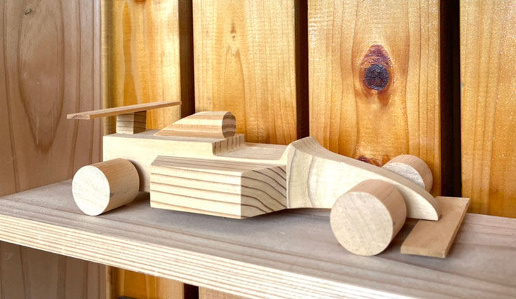 自然素材を使って作るクラフトの内容は、月ごとに変わります。例えば、6月の場合は「バードコール」と「フォーミュラカー」です。