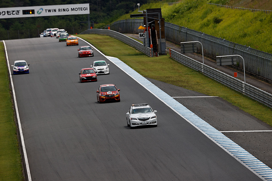 按照計劃,比賽從9時15分14秒的滾動開始。首先,領先的【#375 TVC 砂子塾 M2CSR】按照預期領先比賽。接著是【#82 プアマンズR☆ライア☆DC5】、【#84 SEV・ADVAN・2-11】各自單獨行駛,【#80 茂木的大叔和女兒們和露米露】、【#20 M-Racing S2000】、【#5 POTENZA WAKO'S MART MR2】三方追趕。