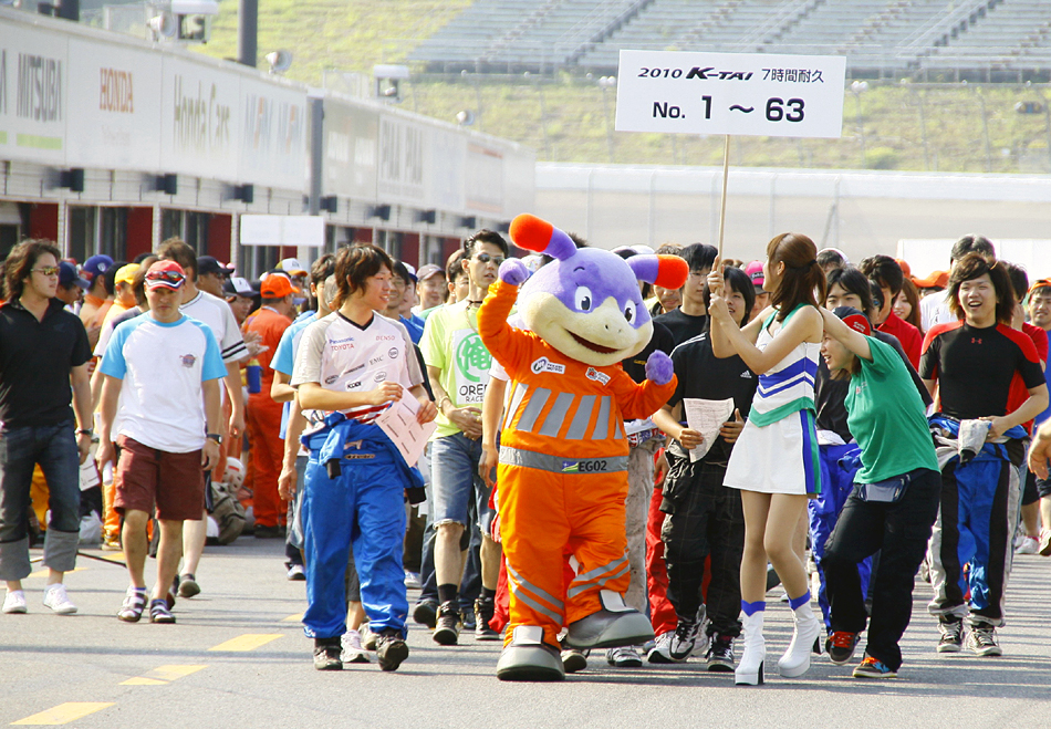 清晨氣溫逐漸上升,以酷奇拉賽車的皮皮拉為首,例行的選手入場開始。全體109支車隊的車手齊聚一堂,會場的熱鬧氣氛不斷提升,彷彿成了一場祭典。每支隊伍都帶著「要愉快地完成7小時終點!」的表情參加簡報會。