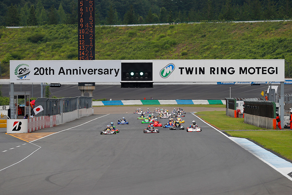第1組的頭位【#9 ddd】奪得了開賽後的領先位置,其次是第2組的【#20 Super Chips Dream】,兩支在“K-耐久賽”中經常見面的隊伍,似乎會一直保持領先。接下來是【#5 MIC KARTING】、【#37 TeamKRS-DAI&MKS】、【#10 Team FB Racing】。開賽的一圈中,【#5 MIC KARTING】回到了領先位置,但是從23號發車位的【#35 Power Cluster K3 Racing】從內側超越。【#43 BOO FOO SETSU】排在第3位,【#37 TeamKRS-DAI&MKS】、【#20 Super Chips Dream】、【#515 e-connection515】緊隨其後,【#9 ddd】則稍微落後,繼續進行回合。