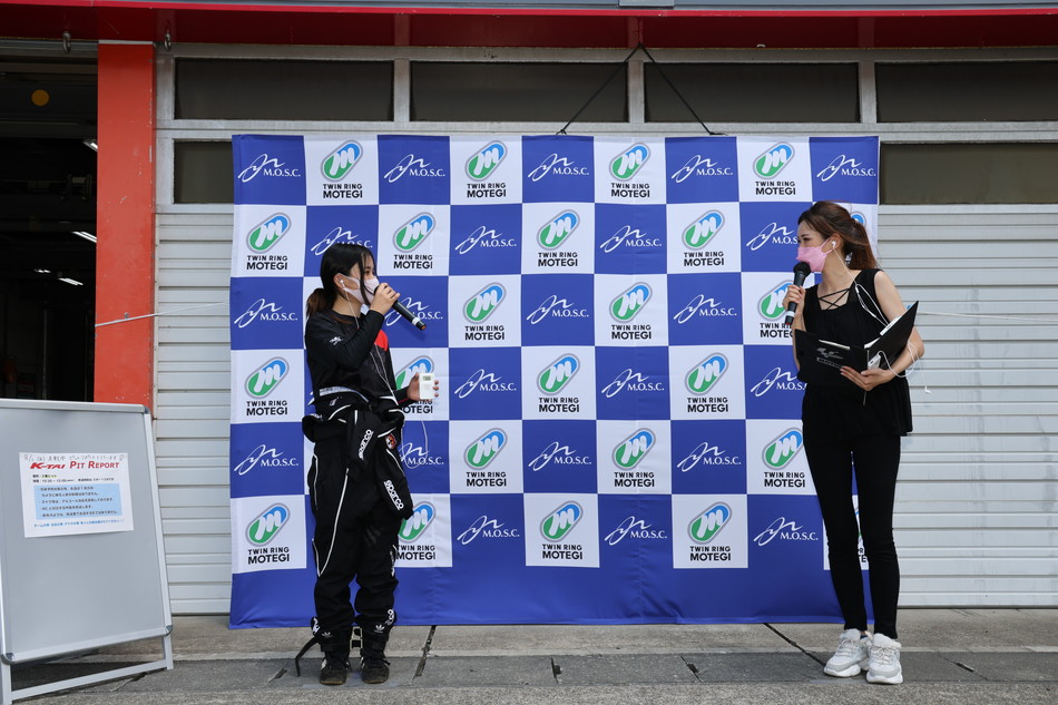 去年縮短至5小時,今年再次舉辦7小時的“K-耐久賽”。還有賽道報告!在2號車庫前,有一位車隊代表前來,也是前雙連茂木天使的水原里佳小姐,保持社交距離進行訪問。實況播報員木幡賢治也和她進行了精彩的互動,為“K-耐久賽”增添了活力。