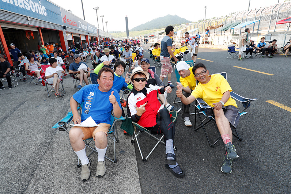 在令人窒息的炎熱中,50輛車參加的A組3小時預賽賽事以勒芒式開始。首先站上領先位置的是【#090 Teruru MotoUP Racing】。其後是【#1 YSS Racing Bulldockertagoss】、【#5 TeamKYOEI & STRIKER Racing】、【#57 Besla Racing with制動女子】,以及第7位起跑的【#67 Riding Sports Fire A】。回到起跑位置的第一圈,【#67 Riding Sports Fire A】再次站上領先位置。國際騎手亀井駿選手展現出了驚人的速度,但隨後發生的變速箱故障使他落後。接替領先位置的是【#5 TeamKYOEI & STRIKER Racing】,但在他後面,【#12 CLUB1.2FK Kusitanikawaguchi】迅速追上並超越。他一直領先,第20圈時還創下了最快圈速。在比賽開始後1小時10分鐘左右進站。再次站上領先位置的是【#5 TeamKYOEI & STRIKER Racing】,但【#090 Teruru MotoUP Racing】以穩定的2分16秒的速度追上並超越,最終以3小時的比賽時間拿下冠軍。Honda CBR250RR展現出了驚人的速度。「事前我調整了車輛,年輕騎手以很好的節奏跑了。雖然我穿著賽車服準備隨時出發,但我可以放心觀看比賽。在正式比賽中,我會制定各種策略來應對。」雖然登記了騎手,但這次沒有參賽的藤井謙汰選手。