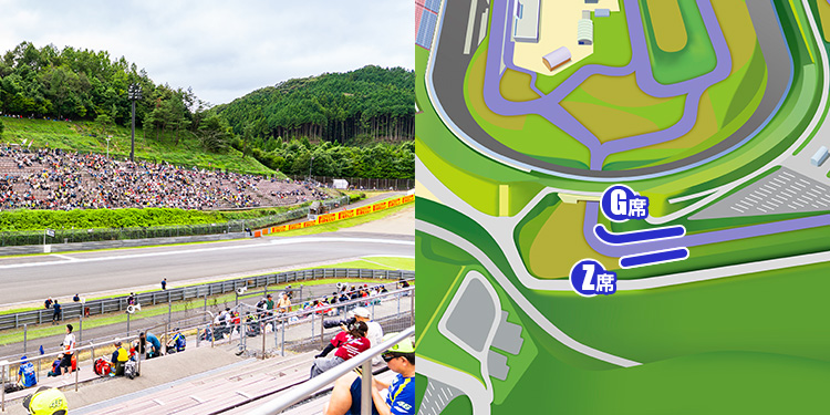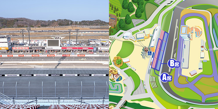設置於Mobility Resort Motegi賽車賽道內,最高速出現的下坡直線終點處的90°彎道內側與外側。