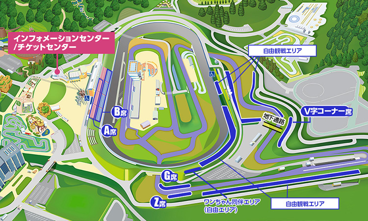 在茂木移動度假村場內實況FM(80.9MHz)可以收聽場內的實況廣播,因此如果有帶耳機的收音機,就能在任何地方清晰地了解比賽狀況。