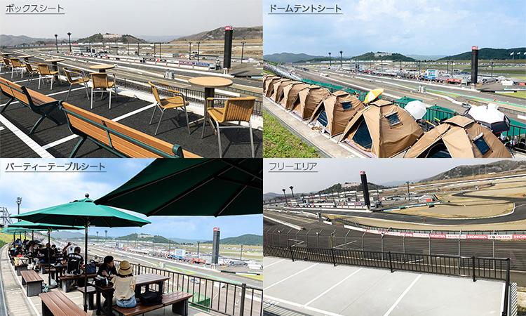 可依觀賽風格選擇附有專用螢幕的有頂「高級」、附桌椅組與遮陽傘的「派對桌席」,或可自由攜帶帳篷等的「自由區」等多種選擇。