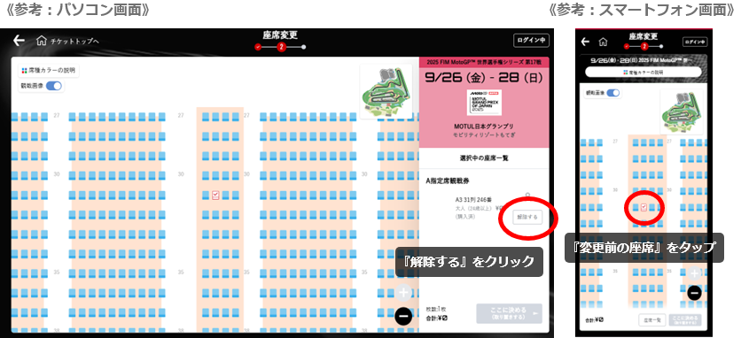 ※變更時,請務必解除變更前的座位。為避免成為追加購買,請在購買前確認購物車內容及價格無誤後再進行購買。