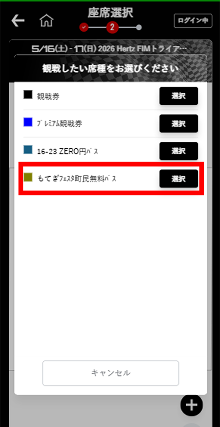 請選擇「Mobility Resort Motegi」並進入票券選擇畫面。